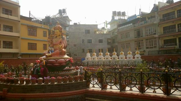 Die Touristen werden dabei gerne mal abgelenkt durch die Vielzahl der kleinen Geschäfte und Cafés. Aber auch durch die Klöster und Tempel, die die Stupa umgeben.