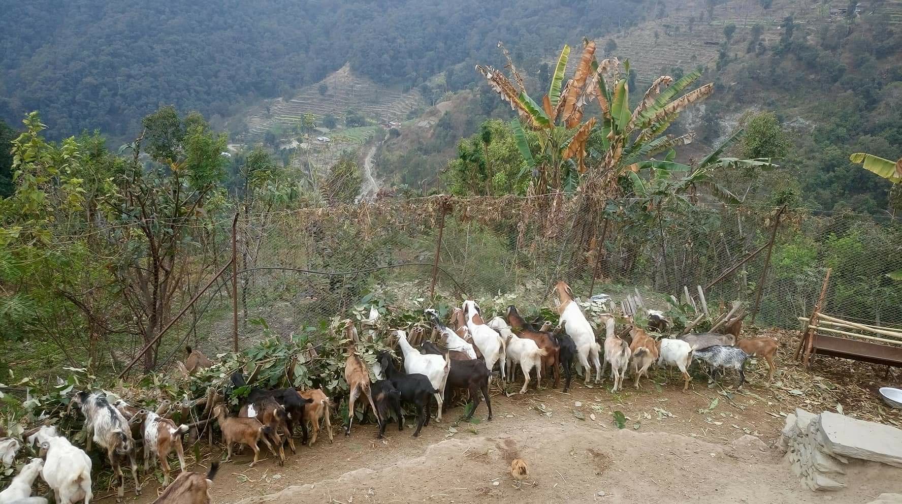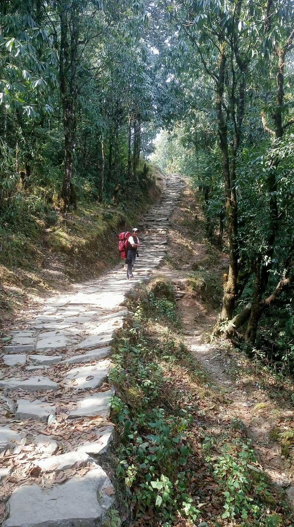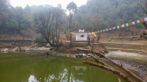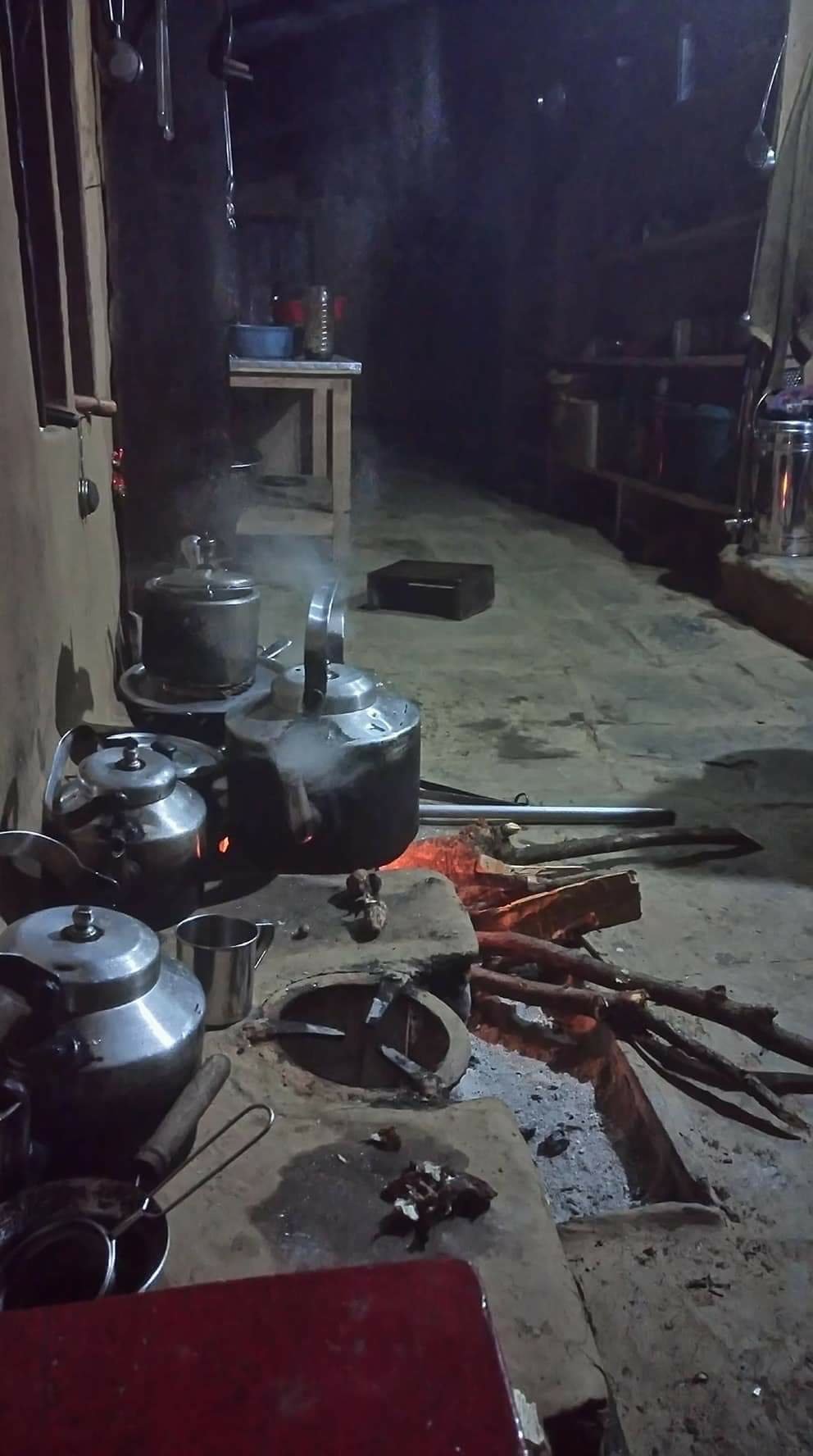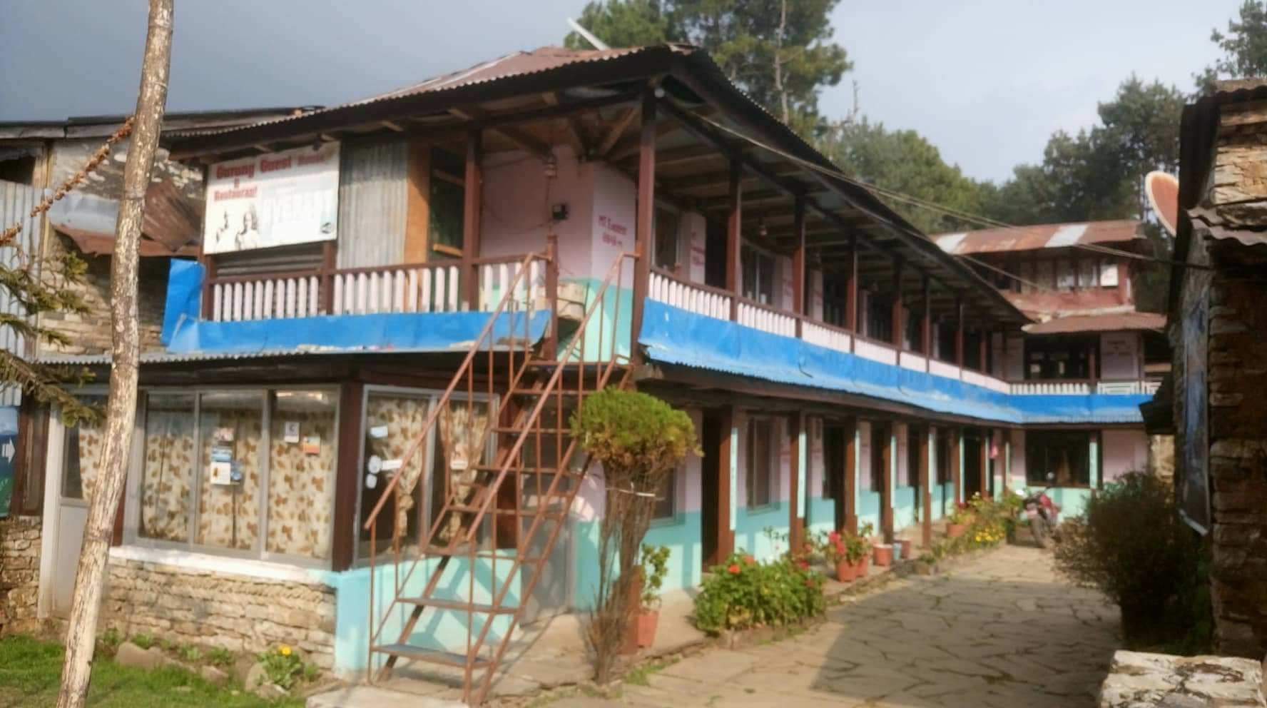 Gegen fünf erreichten wir unser Tagesziel, den kleinen Weiler Bhanyiang auf 2200 Meter Höhe, in dem es sechs Gästehäuser gibt und sonst nichts. Wir quartierten uns auf Anraten der Deutschen, die wir mittags getroffen hatten, im „Happy heart“ ein, das von zwei sehr freundlichen Schwestern betrieben wird. Zum Abendessen gab es Dal Bhat für alle. Und danach in großer Runde den lokalen Schnaps Raksi, der aus Hirse gewonnen wird und warm aus Teebechern (voll!) getrunken wird. Ein erster Selbsttest ergab: das Zeug ist lecker und kann nicht viel Alkohol haben, denn auch die zweite Runde wärmte den Bauch, hatte aber sonst keinerlei Folgen.