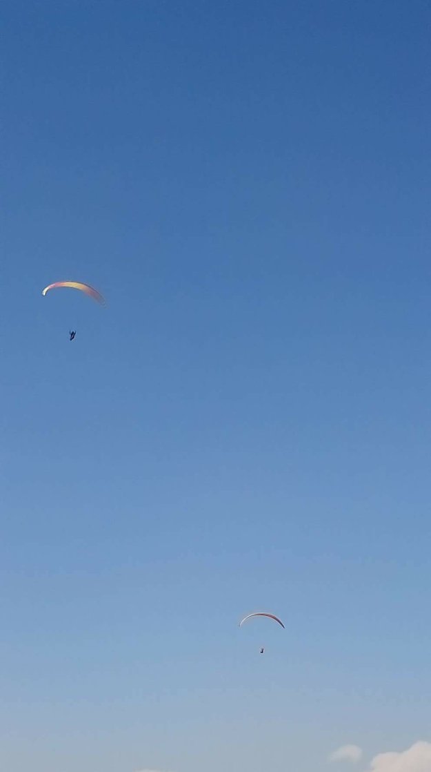 Ich erreiche das Dorf, quere die Straße und bin nach wenigen Minuten am Paraglider – Startplatz. Müßig schaue ich den Mutigen eine Weile zu.
