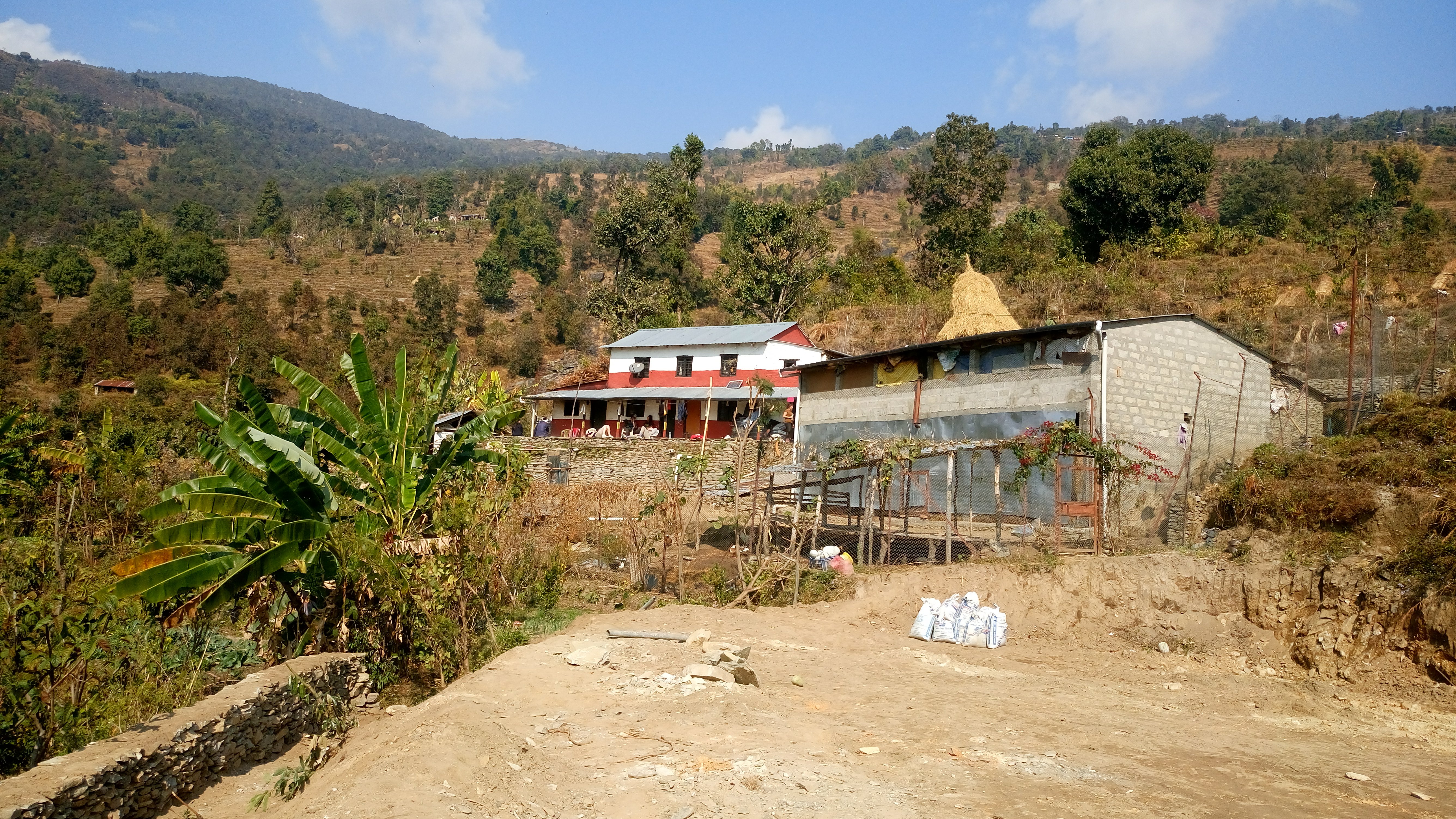 Nach einer Dreiviertelstunde lockert die Wohnbebauung auf und der Blick fällt auf Felder mit Kartoffeln und Gemüse, auf Heuhaufen und Ziegen, die am Straßenrand grasen.