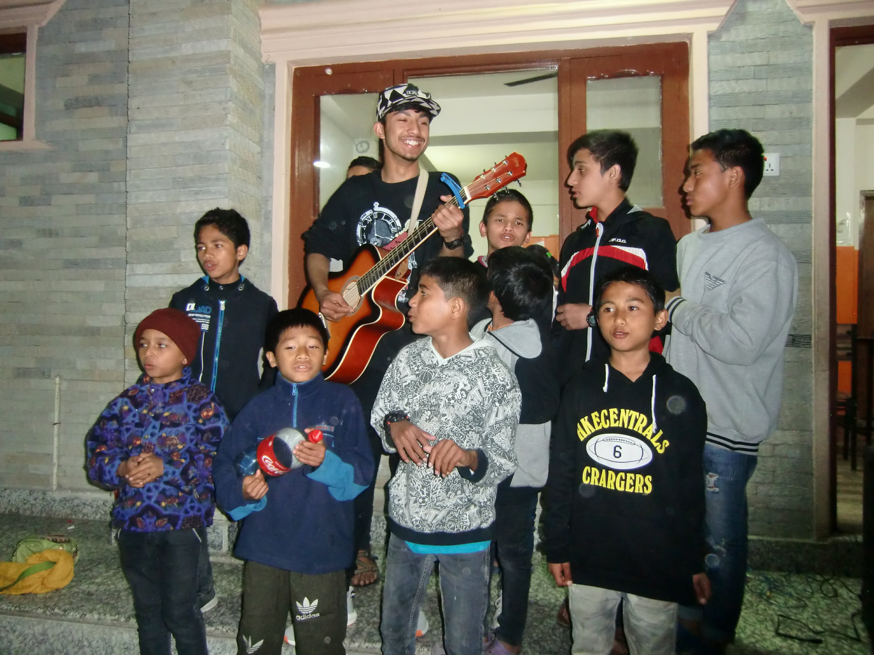 Auch ein von uns zerbrochenes Glas trübt seine gute Laune nicht. Er legt eine CD mit nepalesischer Musik auf und die Kinder tanzen.
