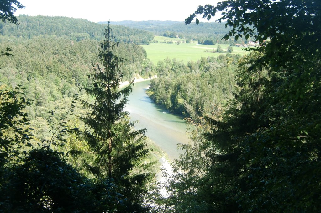 Vom Malerwinkel gibt es einen schönen Blick auf die Isar tief im Tal.