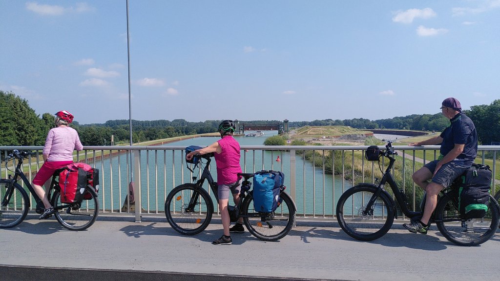 Nach 60 Kilometern setzen wir kurz vor Emden mit der Fähre über, erreichen die Dollart genannte Meeresbucht, wo sich die Ems von uns verabschiedet, um in die Nordsee weiterzufließen.