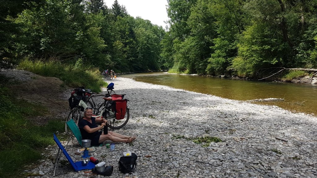 Bald ist Neuburg an der Donau erreicht und ein paar Kilometer weiter eine Brotzeitbank mit Flussblick.