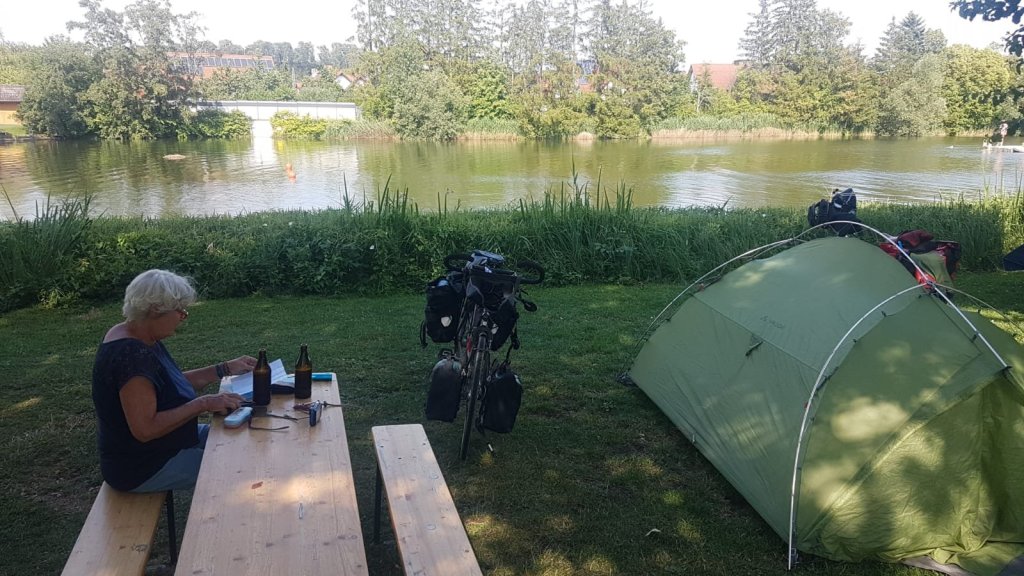 Erst in Ingolstadt kommen wir wieder direkt an den Fluss und zelten auf dem Campingplatz am Auwaldsee.