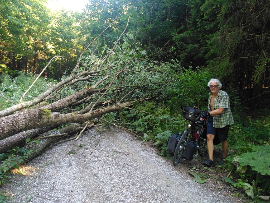 In der Nacht spielt der Himmel vierstimmig Trommel. Aus allen Himmelsrichtungen donnert es, mal piano, mal fortissimo. Wir stehen unter einer Vielzahl von hohen Bäumen und ich male mir abwechselnd aus, dass ein starker Ast abbricht und auf unser Zelt fällt oder aber der Blitz einschlägt. Wo ist das nächste feste Gebäude, in das wir uns bei einem Orkan retten können? Dann fängt es an zu regnen und ich schlafe ein.