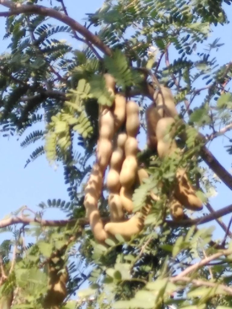 Bei einem Spaziergang am Fluss finden wir weitere Naturschätze, sehr ertragreiche Obstbäume. Bananen, Mango, Papaya erkennen wir, Tamarinde, aus der die hier zum Kochen verwendete Paste hergestellt wird, kennt plant net.