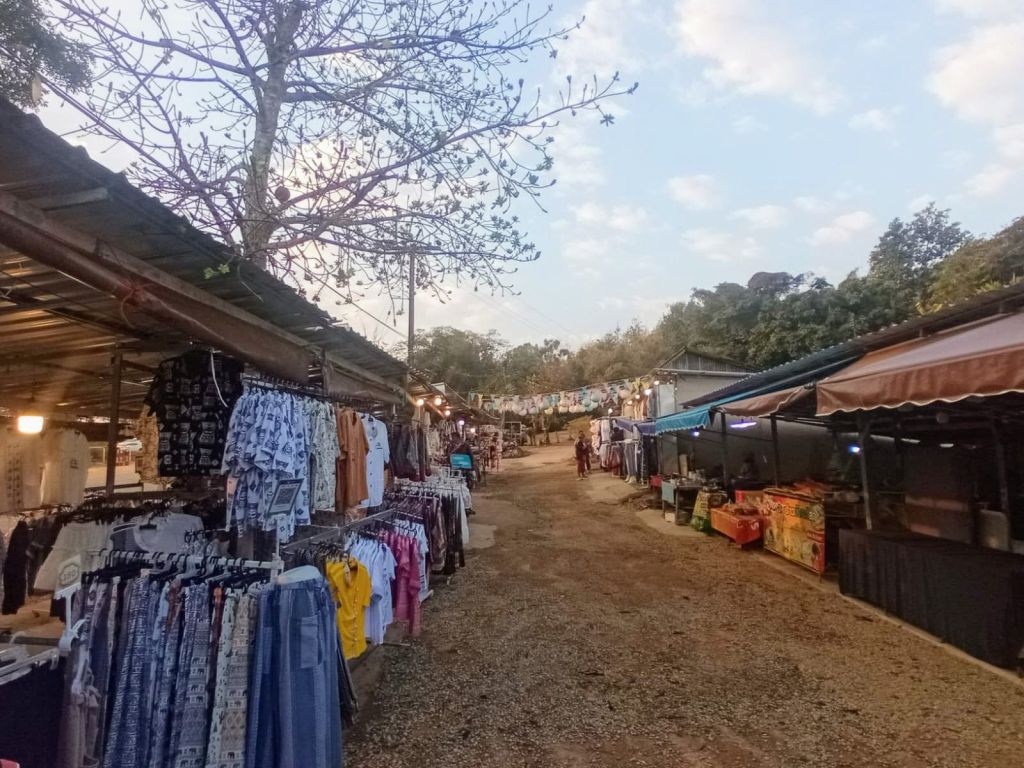 Es scheint hier jeden Morgen so viel los zu sein, denn der Weg vom Autoparkplatz zum Kassenhäuschen ist gesäumt von Marktständen, die Souvenirs und Speisen und Getränke anbieten.