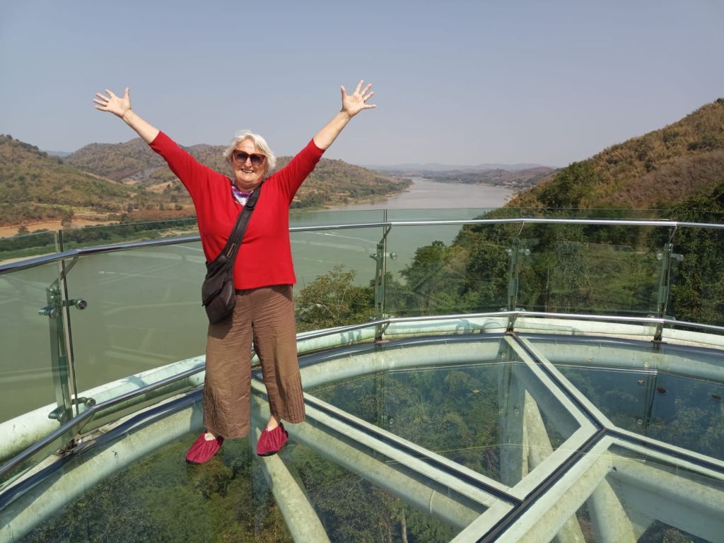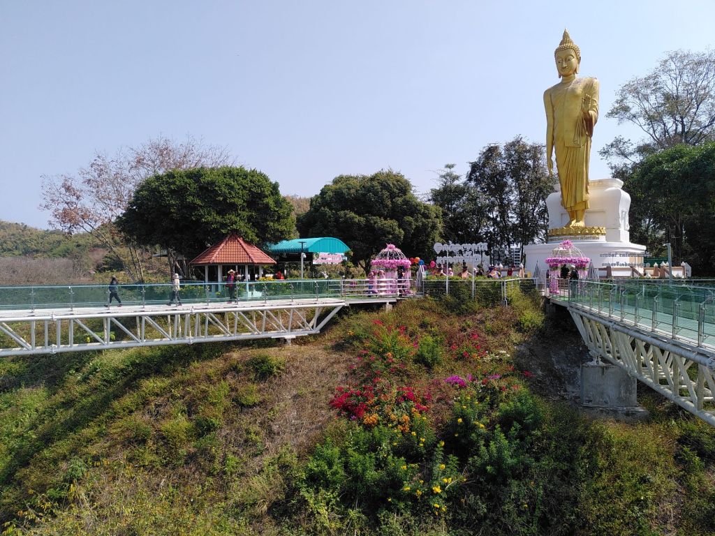 Technische Daten zum Skywalk finde ich im Netz: 2020 gebaut, 80 Meter lang, 80 Meter hoch „oder so hoch wie ein 30stöckiges Gebäude“. Imposant. Es gibt auch Besucher, denen das Glas über dem Abgrund Angst macht. Wir haben das zum Glück ja in Bangkok trainiert.