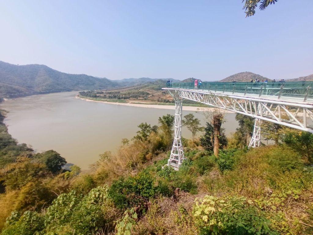 Im Ort gibt es eine Touristinfo. Wir hoffen, hier Auskunft zu bekommen, ob es wirklich keinen öffentlichen Transport entlang des Mekong über die so angepriesene wunderschöne Strecke entlang des Flusses ins 200 Kilometer entfernte Nong Khai gibt. Leider, leider nicht. Das gab es wohl früher mal, jetzt nicht mehr. Also ist eine Planänderung nötig. Aber erstmal zum zweiten Höhepunkt des heutigen Tages: dem Skywalk.