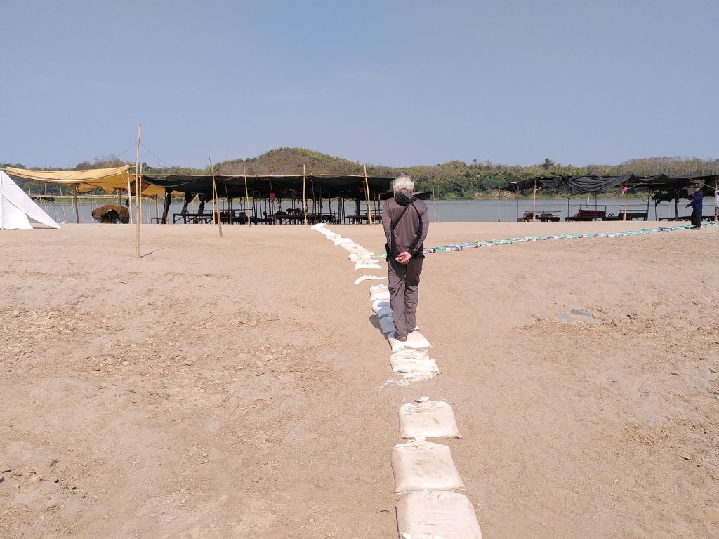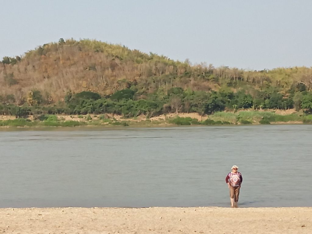 Zwischen Chiang Mai und Pak Chom sieht der Fluss gar nicht wie ein solcher aus. Jetzt in der Trockenzeit ist der Wasserstand so niedrig, dass der steinige Untergrund aus der Wasseroberfläche herausspitzt. Sandinseln, teils bewachsen, lugen heraus.