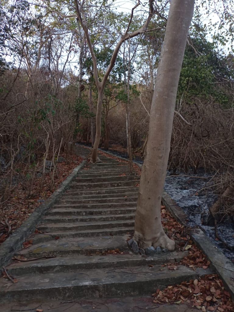 Auch hier sind wir nicht alleine, aber es sind erheblich weniger Leute da als beim Sonnenaufgang. Westliche Touristen gibt es in dieser Gegend wenige. Das merkt man auch an den Ausschilderungen, die ausschließlich auf Thai sind. Aber hilfsbereite Mitmenschen zeigen uns gern, wo es lang geht.