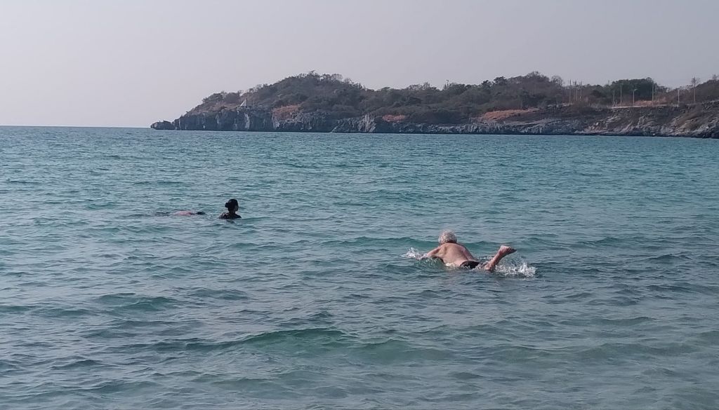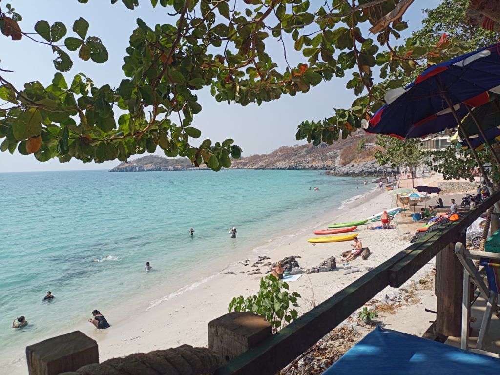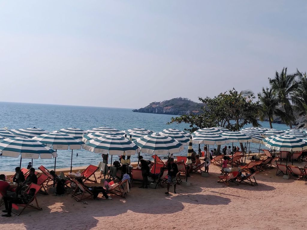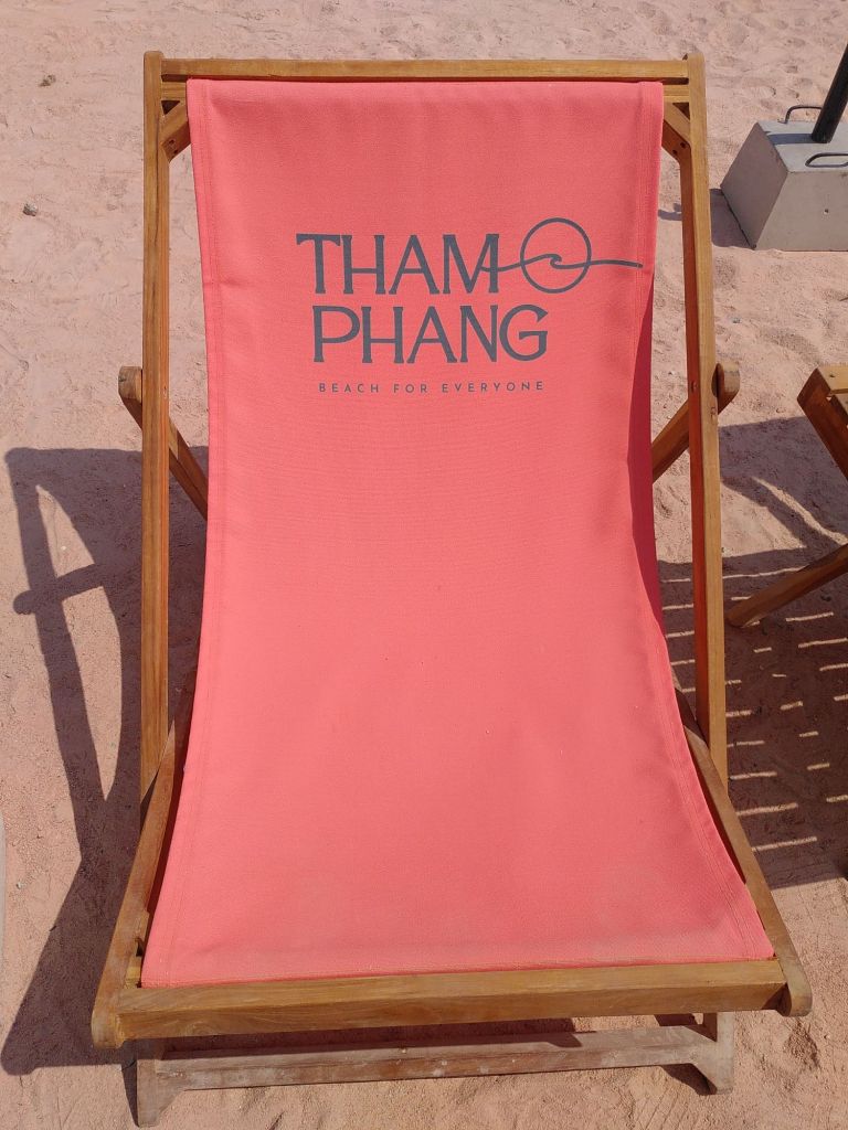 Es gibt Liegestühle plus Tischchen und Sonnenschirm kostenfrei. Tham Phang, so heißt der Strand, beach for everyone, ist das Motto. Dieses großartige Angebot lassen wir uns nicht entgehen.