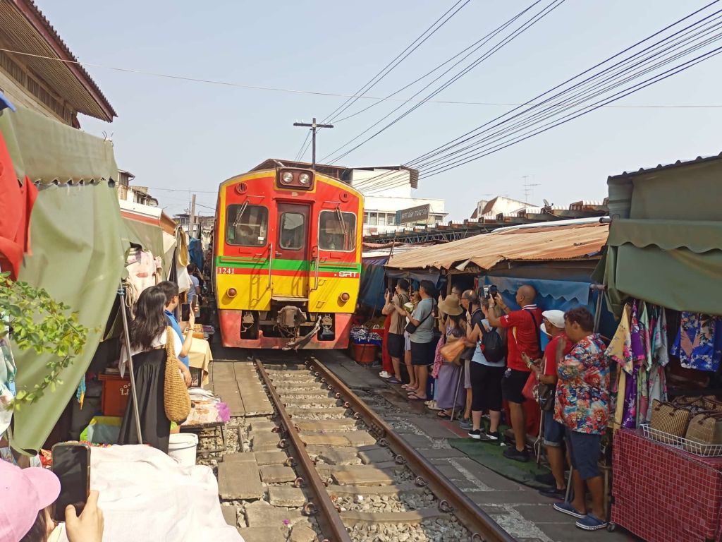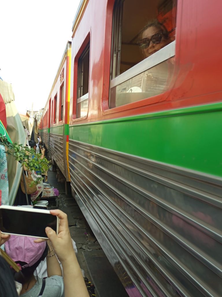 Uns ist klar, dass es sich hierbei um zwei Hotspots der Gegend handelt, die Heerscharen von Touristen anlocken, aber da wir eh noch so viel Zeit in Bangkok haben, wollen wir uns das Spektakel auch mal anschauen.