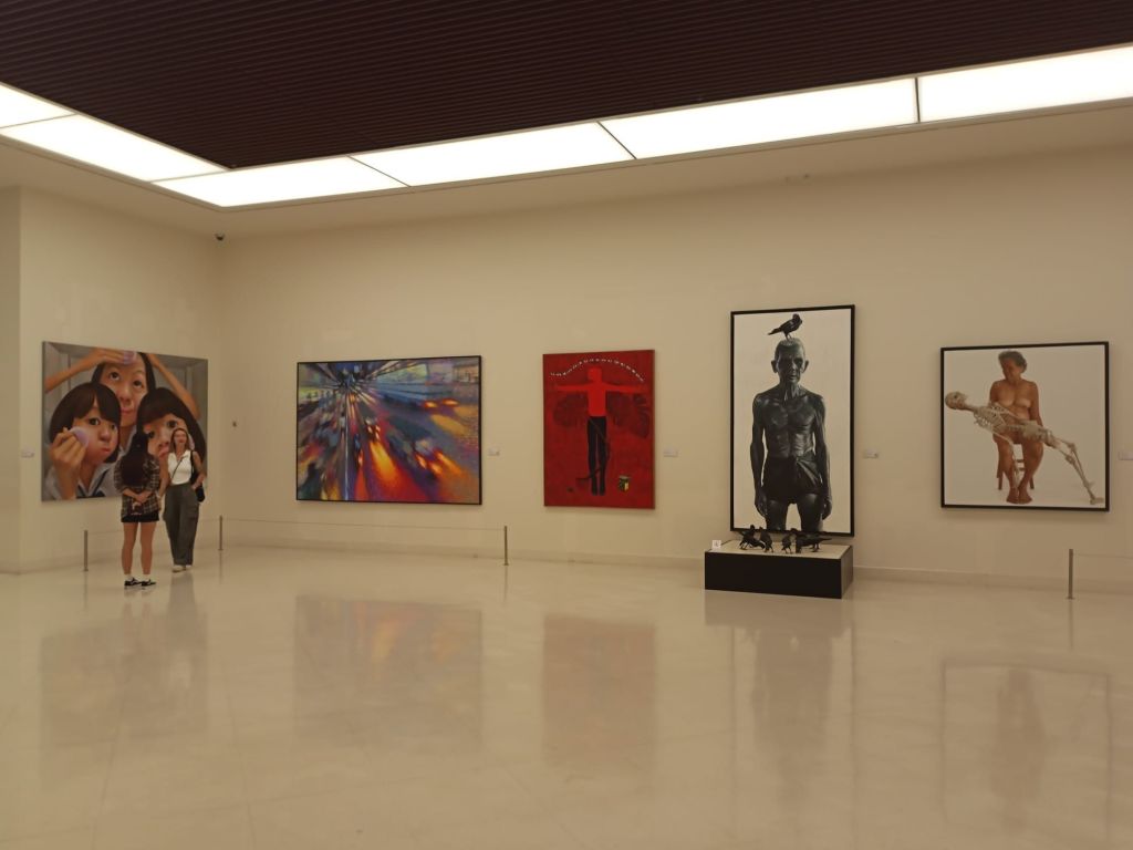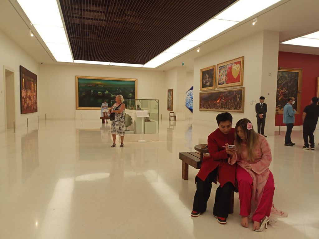 Obwohl das Museum sehr abseits liegt, ist es gut besucht. Im Café erholt sich gerade eine Schulklasse, in der Ausstellung sind Einheimische und Touristen, wiederum in erster Linie junge Menschen, unterwegs. Auf fünf Stockwerken und 20 000 qm werden vor allem zeitgenössische Kunstwerke aber auch alte Volkskunst wie Masken oder Schattenspielfiguren gezeigt.