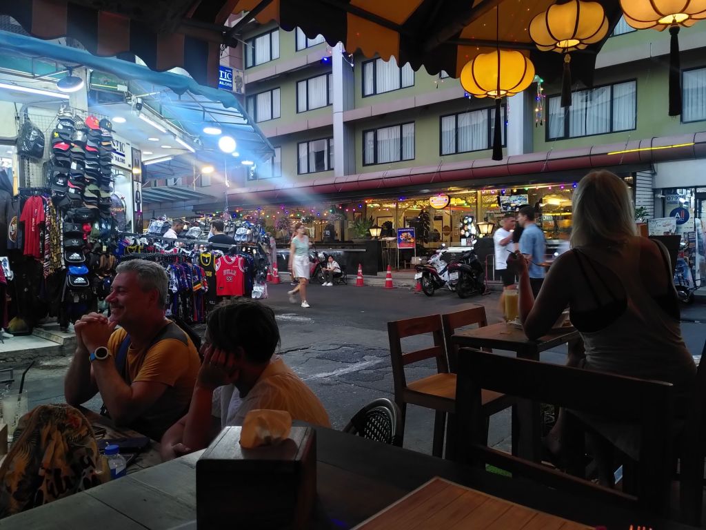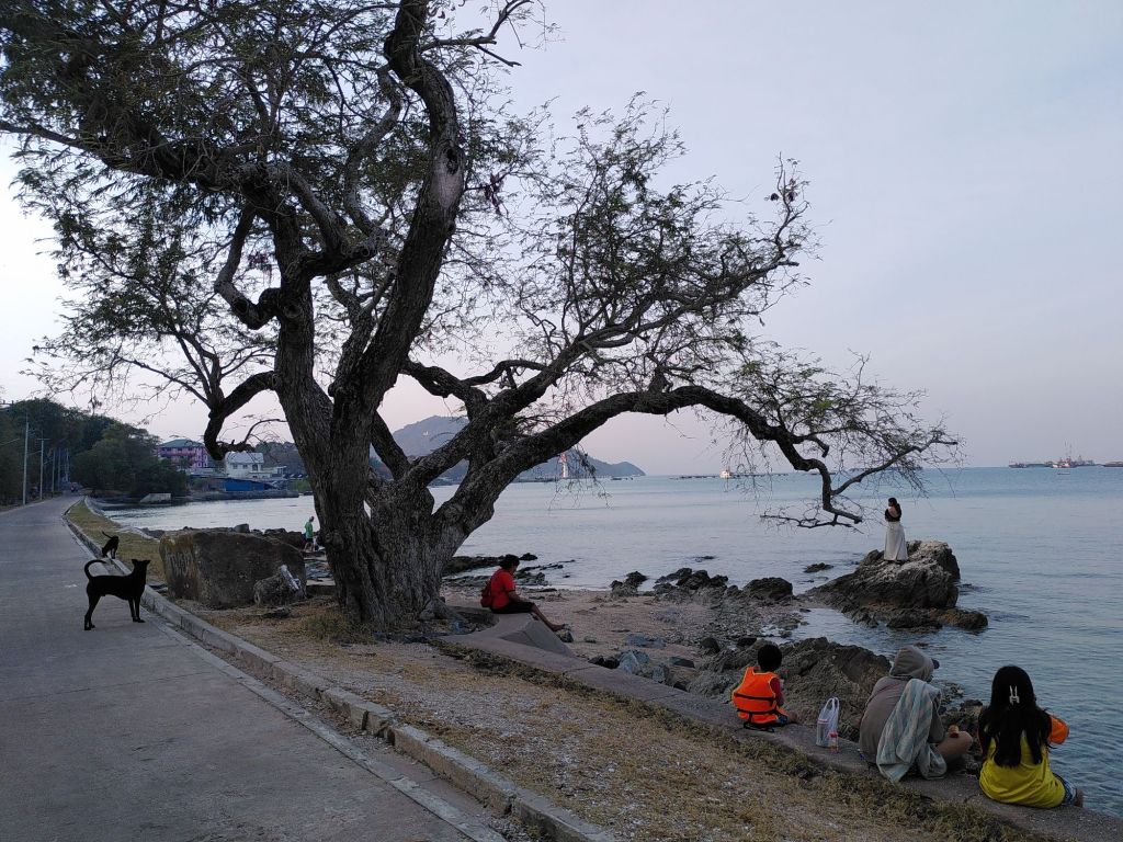 Beim Abendessen denken wir darüber nach, warum uns diese Insel nicht spontan anspricht. Sie ist kein tropisches Idyll mit Palmen und langen Sandstränden. Hier wird nichts präsentiert, nichts aufgehübscht. Stattdessen bekommen wir einen Einblick ins Alltagsleben, sehen, wie sehr Privat- und Geschäftsleben ineinander fließen: im Erdgeschoss fast jeden Hauses wird etwas verkauft, hergestellt oder eine Dienstleistung angeboten. Derselbe Raum wird für die Zubereitung der Mahlzeiten, fürs Essen, für das Treffen mit Familie und Freunden, für die Hausaufgaben der Kinder, für deren Spiele genützt. An vielen Ecken wirkt die Szenerie etwas verlottert, nicht weil Abfall rumliegt sondern irgendwelcher Kram. Es gibt keine ansonsten in Thailand üblichen und auf uns Ausländer so idlisch wirkenden Nachtmärkte. Keine walking streets. Thai-Massage? Fehlanzeige. Hier wird einfach gelebt.
