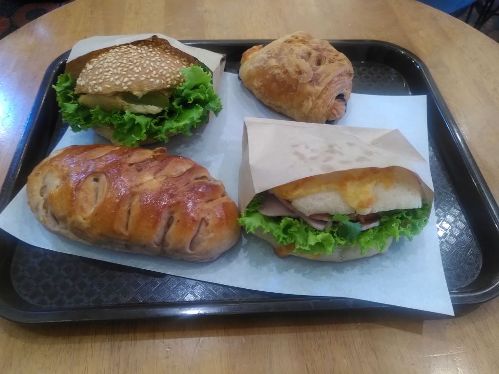Sehr verlockend ist auch das Frühstücksangebot in der Konnichipan bakery: Sandwiches mit Hummus (meine Wahl), Lachs, Mozzarella-Schinken, Croissants mit und ohne Schokolade und viele andere Köstlichkeiten. Ein ununterbrochener Strom an vor allem jungen Reisenden schiebt sich in das Café, das gar nicht so viele Tischchen und Höckerchen hat, um allen Platz zu bieten. Deshalb räumen wir unseren Sitz auch gleich nach dem letzten Happen.