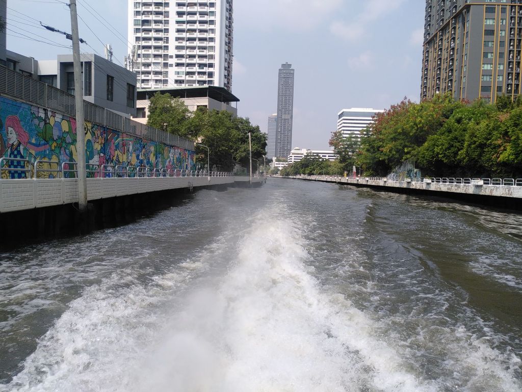 Der Klong Saen Saep ist der einzige Kanal, auf dem im Zentrum von Bangkok noch Personenverkehr stattfindet. Er ist mit insgesamt 53 Kilometern der längste Kanal Thailands. 18 davon sind wir heute auf ihm gefahren, eine schöne Art, uns von der Stadt zu verabschieden. Am Abend geht unser Flieger Richtung Heimat.