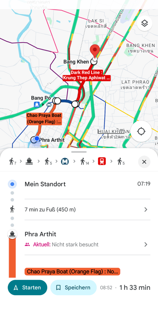 Wir sind seit 15 Uhr wieder in der Landeshauptstadt, die wir vor knapp vier Wochen für unsere Rundreise verlassen haben. Die Fahrt von Koh Sichang mit Boot und Bus hierher war problemlos. Nur die Fahrt vom Busbahnhof in Bangkok zu unserem Hotel dauert ewig wegen des vielen Verkehrs.