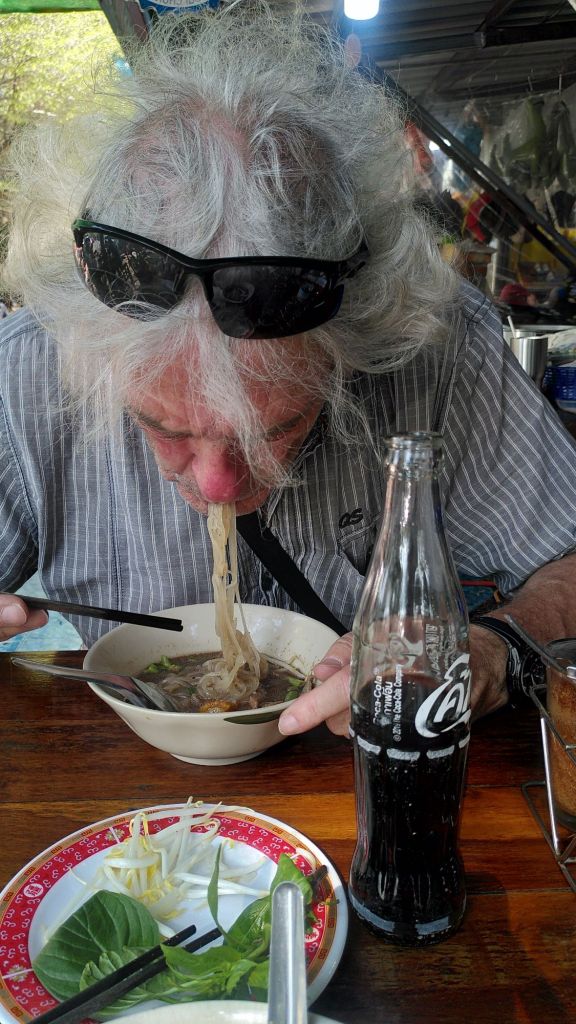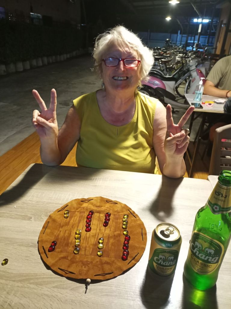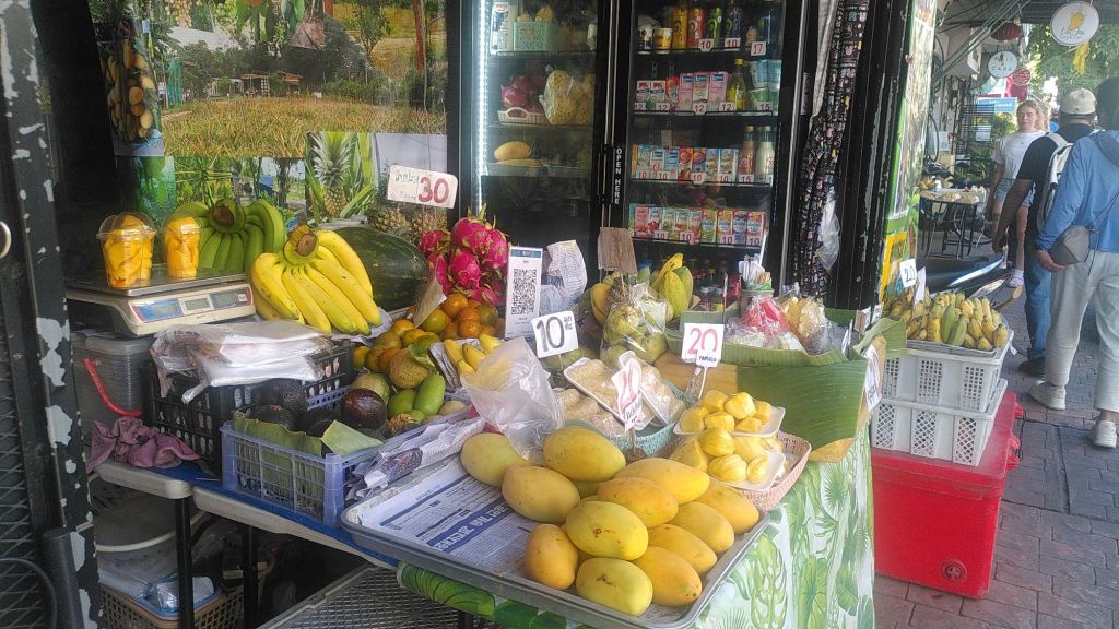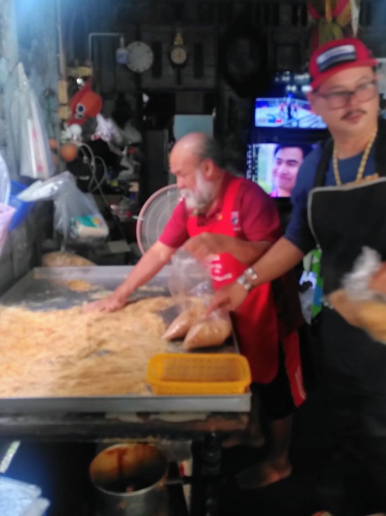 Neben unzähligen Tempeln (laut Internet sind es 300 auf einer Fläche von eineinhalb Quadratkilometern) gibt es viele Touristen aus Asien, Amerika und Europa, Läden, Cafés, Restaurants, Hotels. Es gibt Massen von Massagesalons, Schneidereien, Marihuanashops, Geldautomaten, Kunsthandwerk und Ramsch. Die Leute gucken und kaufen, bis sie müde sind. Es ist quirlig hier, dabei sehr entspannt. Auch wir lassen uns treiben, shoppen ein bisschen, essen Mango sticky rice und Roti, suchen Geocaches und besuchen das Fotografiemuseum.