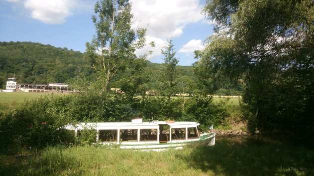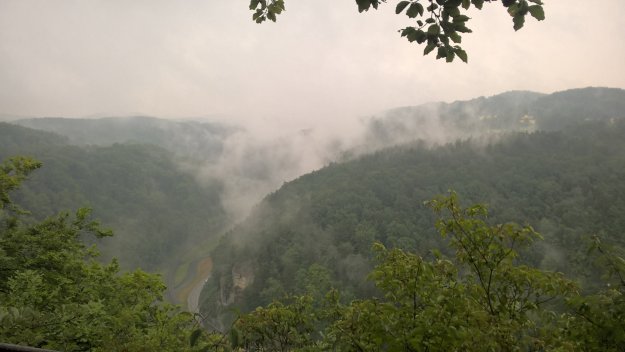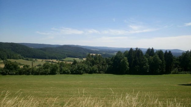 Wir trinken in der Wirtschaft nebenan noch einen Kaffee und nehmen dann die letzten drei Kilometer für heute in Angriff. Gemein. Anstatt die Tour langsam ausklingen lassen zu können, erwartet uns nicht nur ein weiterer recht heftiger Anstieg sondern auch der erste Regenschauer dieser Tour. Und Donnergrollen, was mir im Wald ein wenig Angst macht.