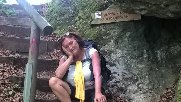 Ab und zu hält unser Weg eine Überraschung für uns bereit. Gerade kämpfen wir gegen unser mittägliches Tief an, als ein veritabler Steig unseren Adrenalinspiegel ansteigen lässt: ganz viiiele Höhenmeter wollen auf relativ kurzer Strecke erklommen werde. Und ich schimpfe vor mich hin: „Die Nepali können das viel besser! Warum nur müssen denn die Stufen hier für die langen Beine von Zwei-Meter-Männern gemacht sein?!“