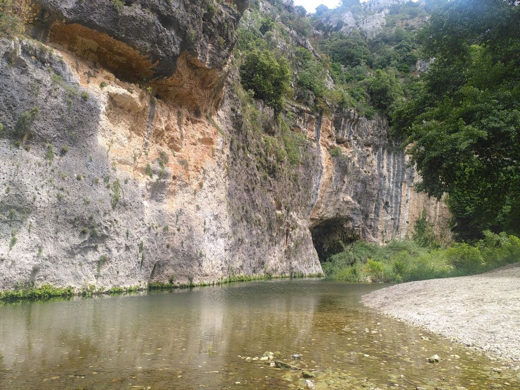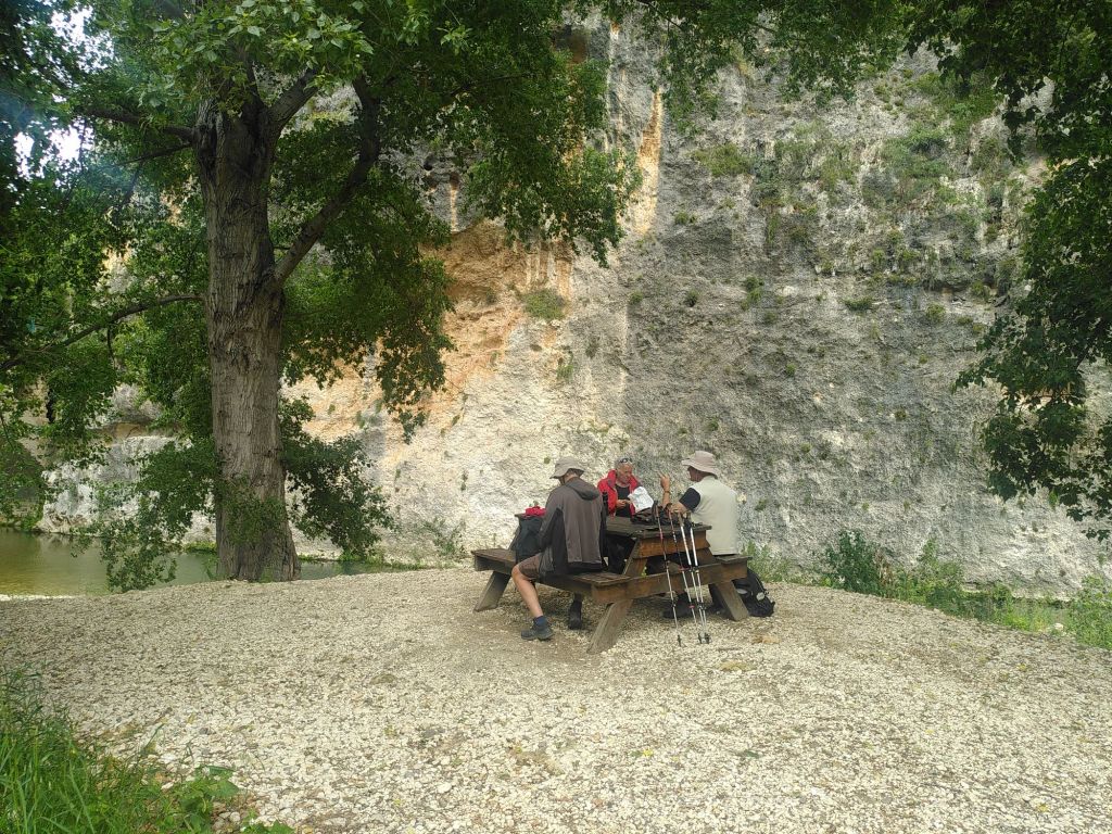Schließlich steigen wir ganz hinab zum Fluss, machen Picknick und kraxeln auf der andere Seite wieder hoch. Um die Enden der Felswände zu sehen, müssen wir den Kopf in den Nacken legen. Der Fluss rauscht, Bienen summen, Frösche quaken.