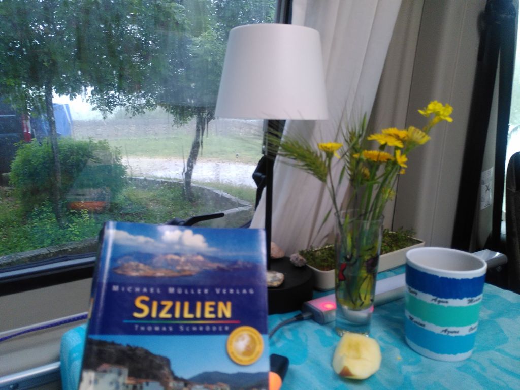 Für heute Nacht und morgen ist Starkregen angesagt. Falls das tatsächlich so sein sollte, nehmen wir uns einen Tag Auszeit und wettern in den Bussen ab. Ich hätte durchaus Lust dazu. Gemütlich lesen, spielen, schlafen, während der Regen aufs Dach trommelt. Na, mal sehen.