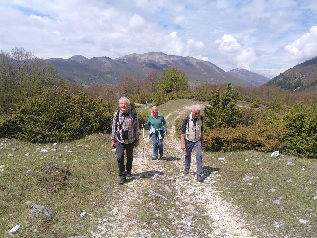 Todesmutig machen wir uns nach dem Frühstück fertig zu einer Wanderung durchs wilde Gebirge. Wir sind, wie schon berichtet, im Nationalpark Abruzzen und gestern erlebten wir die raue, schroffe Seite dieser Berglandschaft. Heute hingegen wandern wir durch eine komplett andere Landschaft. „Ist es übertrieben, sie lieblich zu nennen?“, frage ich meine Reisegefährten. Nein, alle schütteln mit dem Kopf. Das empfinden sie auch so. Stellenweise fühlen wir uns sogar wie in einem Kurpark.