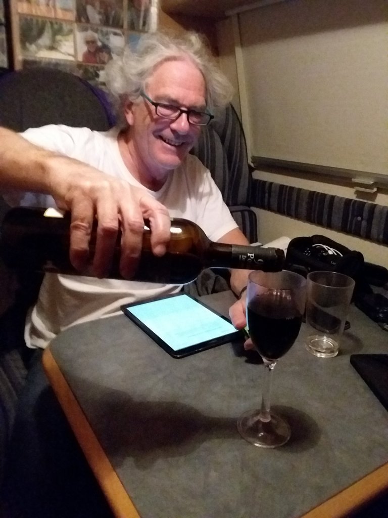 Wie schön ist es, morgens wach zu werden und sich auf den Tag freuen zu können. Da sich unser Frischwassertank wegen der immer noch niedrigen Nachttemperaturen selbsttätig entleert hat (Frostschutz!), mache ich im Miniwaschbecken unseres Minibads eine Katzenwäsche. Wir haben ja zum Glück einen 10-Liter-Wassertank zum Kochen und Waschen an Bord. Dann schwinge ich mich auf mein akkuloses Fahrrad, um eben diesen aus der zwei Kilometer entfernten Ladestation zu holen.