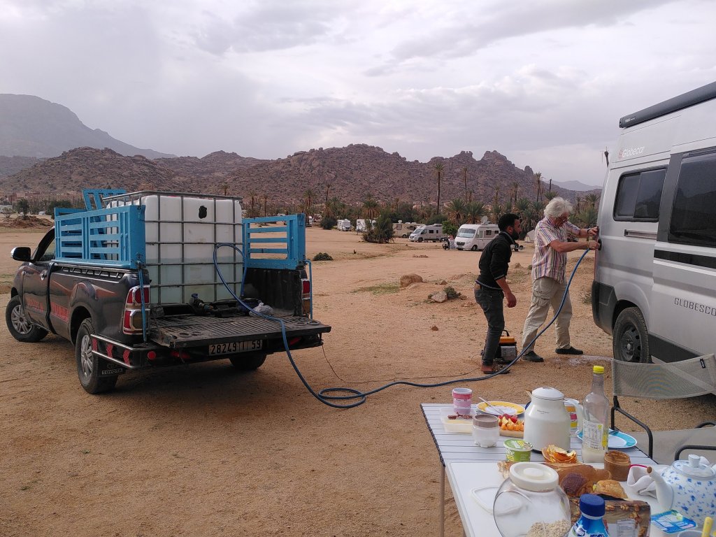 Im Camper wird’s jetzt eng mit den nassen Klamotten. Nachdem alles irgendwie aufgehängt ist, machen wir es uns gemütlich. Wenn man im Trockenen sitzt, klingt das Trommeln des Regens auf dem Wagendach sehr heimelig.