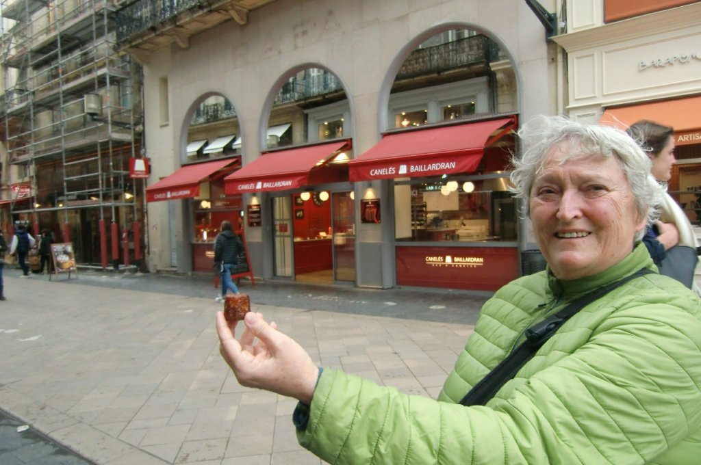 Wir kosten die feinen Canelés, guglhupfförmige kleine Küchlein, innen weich, außen knusprig mit einem Spritzer Rum und einem Hauch Vanille gewürzt.