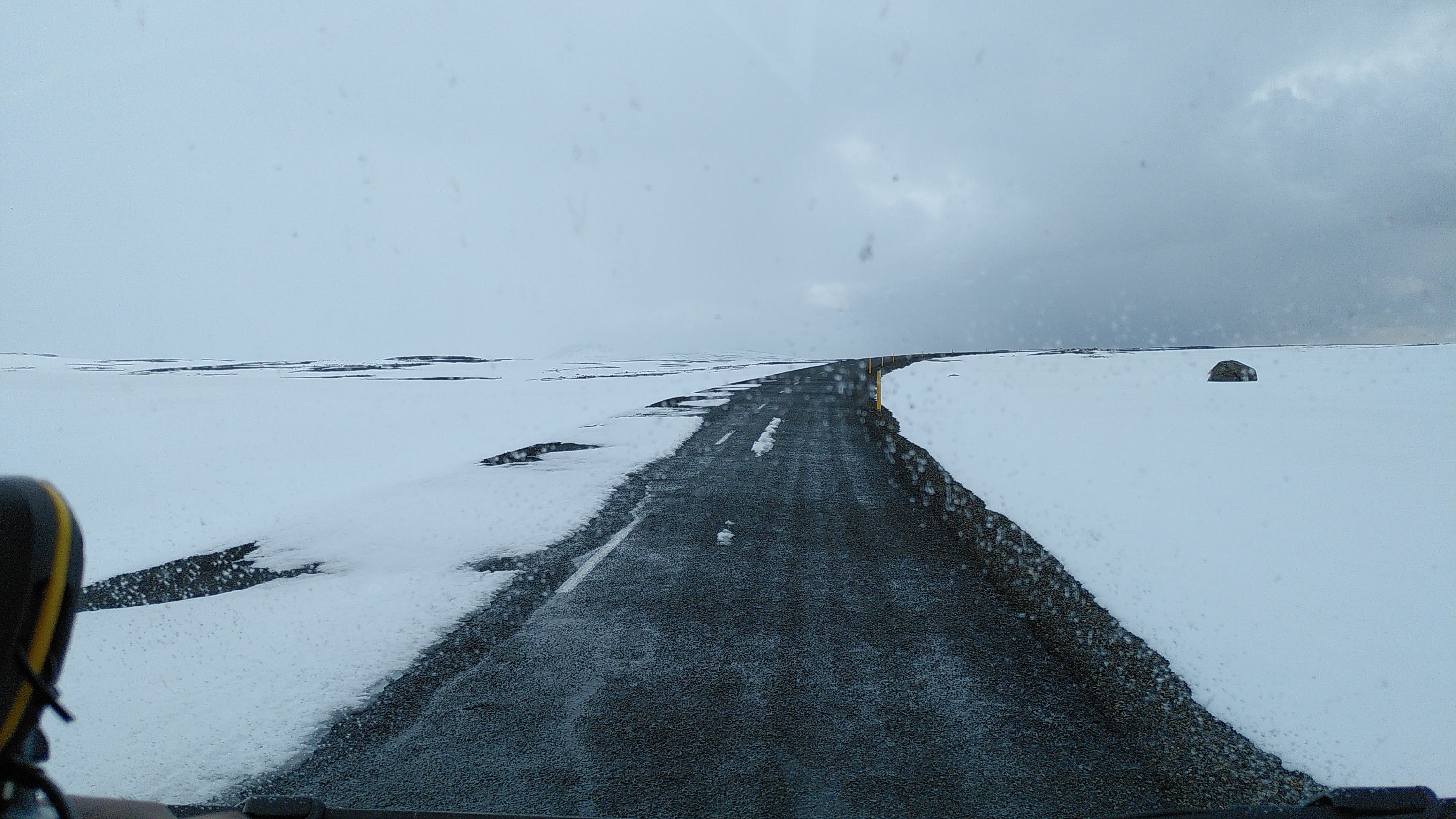 Der Weg nach Egilstadir und zu den Stora Fell Cottages, in denen wir die nächsten Tage verbringen werden, führt über die 27 km lange Passstraße und die Hochebene Fjarđarheiđi. Der höchste Punkt ist zwar nur auf 630 m, aber um uns herum ist es verschneit.