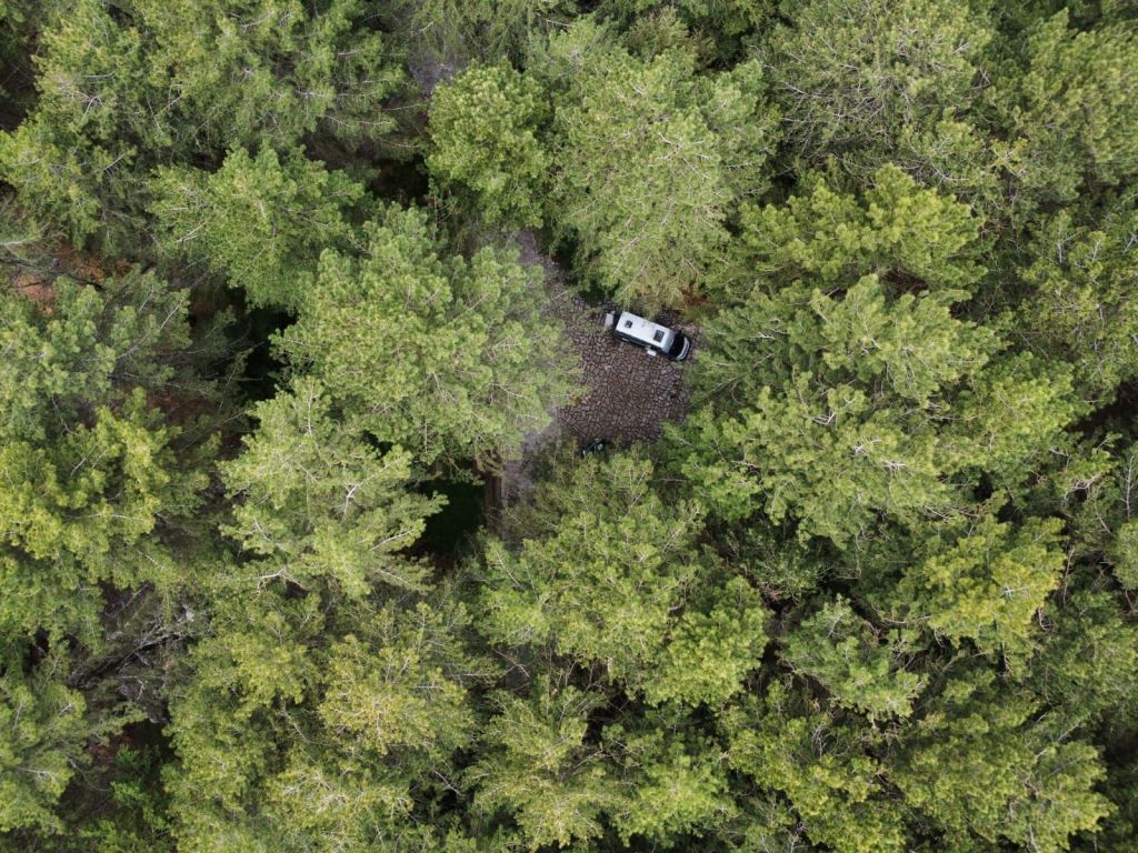 Dann sind wir am Ziel. Mitten im Wald. Neben einem alten Bekannten, Herrn Garibaldi. Bei ihm haben wir neulich erst gut genächtigt.