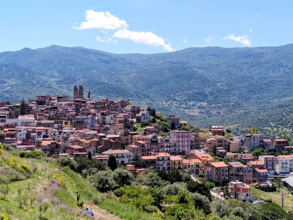 Unserem Motto Berge – Meer – Berge – Meer folgend fahren wir wieder in die Berge. Achim hat einen schönen Übernachtungsplatz im Nationalpark Aspromonte entdeckt. Den müssen wir uns aber erstmal erarbeiten, von Meereshöhe auf 1200 Meter. Von 24 Grad auf 14. Es ist eng, es ist kurvig, aber wir haben interessante Blicke.