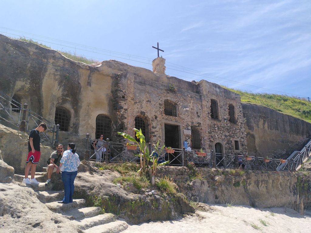 Ein Stück weiter die Küste entlang nach Norden haben vor langer Zeit schiffbrüchige Matrosen ein Gelübde abgelegt: „Wenn wir diesen Orkan überleben, bauen wir hier, wo wir mit unserem kaputten Schiff an Land gespült wurden, eine Kapelle.“ Das war im 17. Jahrhundert, heute gehen wir über Treppen von der Straße zum Strand hinunter und sehen die in den Felsen gehauene Kapelle Piedigrotta.