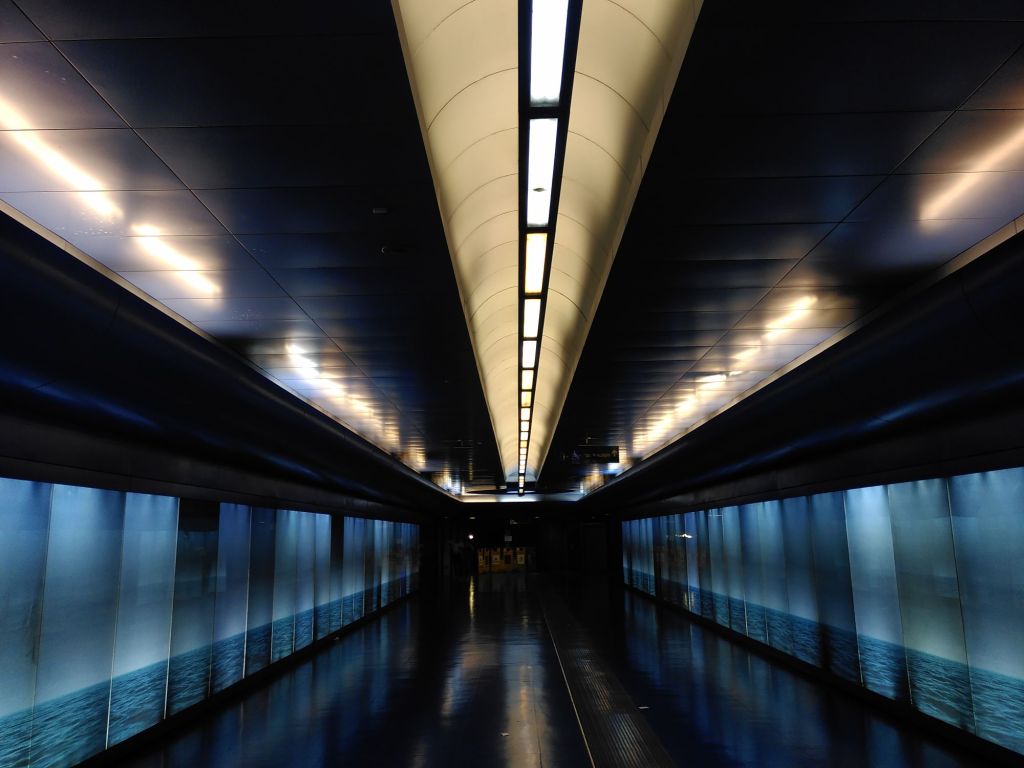 Entlang der Rolltreppen beeindruckt das Spiel aus Lichtern und unerwarteten Formen. Medien zufolge gehört sie zu den schönsten U-Bahn-Stationen Europas.