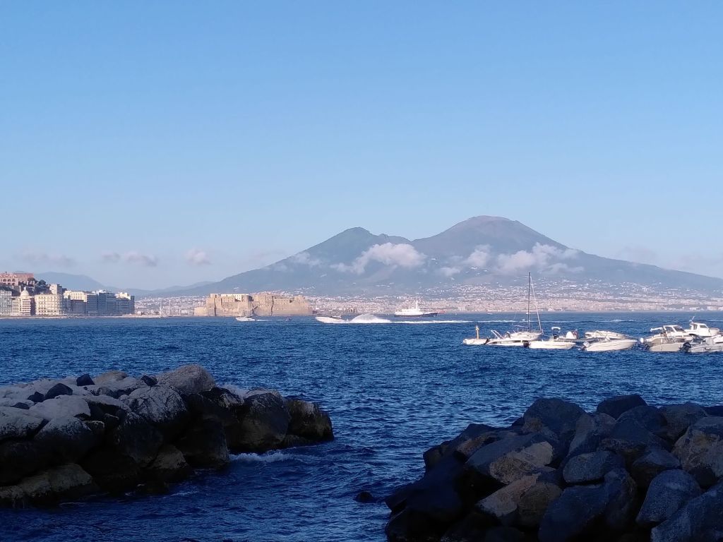 Vorbei am Vesuv, majestätisch zu unserer Rechten, erreichen wir Bella Napoli um sechs Uhr.
