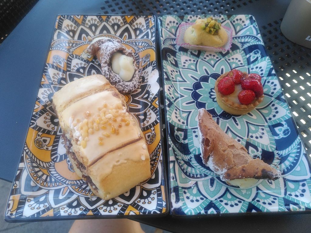 Dem Internet sei Dank gelangen wir zur Pasticceria Popella mit ihren Fiocci di Neve, Schneeflocken. Es gibt sie in drei Varianten: mit Ricotta, Schokolade oder Pistaziencrème gefüllt. Ich kann nicht sagen, welche mir am besten geschmeckt hat. Eine so lecker wie die andere.