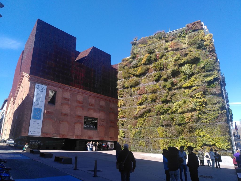 Zum Abschluss unseres Kurztrips in die spanische Hauptstadt laufen wir noch zum Caixa-Forum, ein Kunstforum der gleichnamigen Bank mit beeindruckender Architektur und einem vertikalen Garten nebendran.