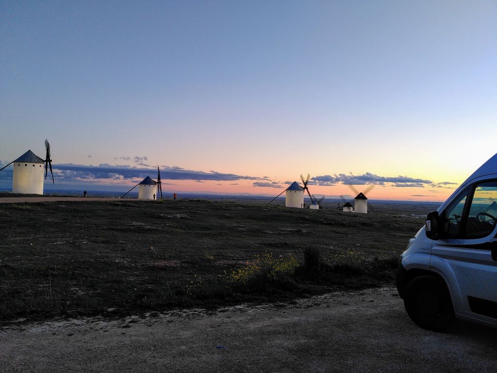 Dann geht es weiter nach Süden. Das Land der Windmühlen ist unser Ziel. In Campo de Criptana, 170 Kilometer südlich von Madrid, stehen neun auf einem Plateau. Wenige Minuten vor Sonnenuntergang sind wir da.