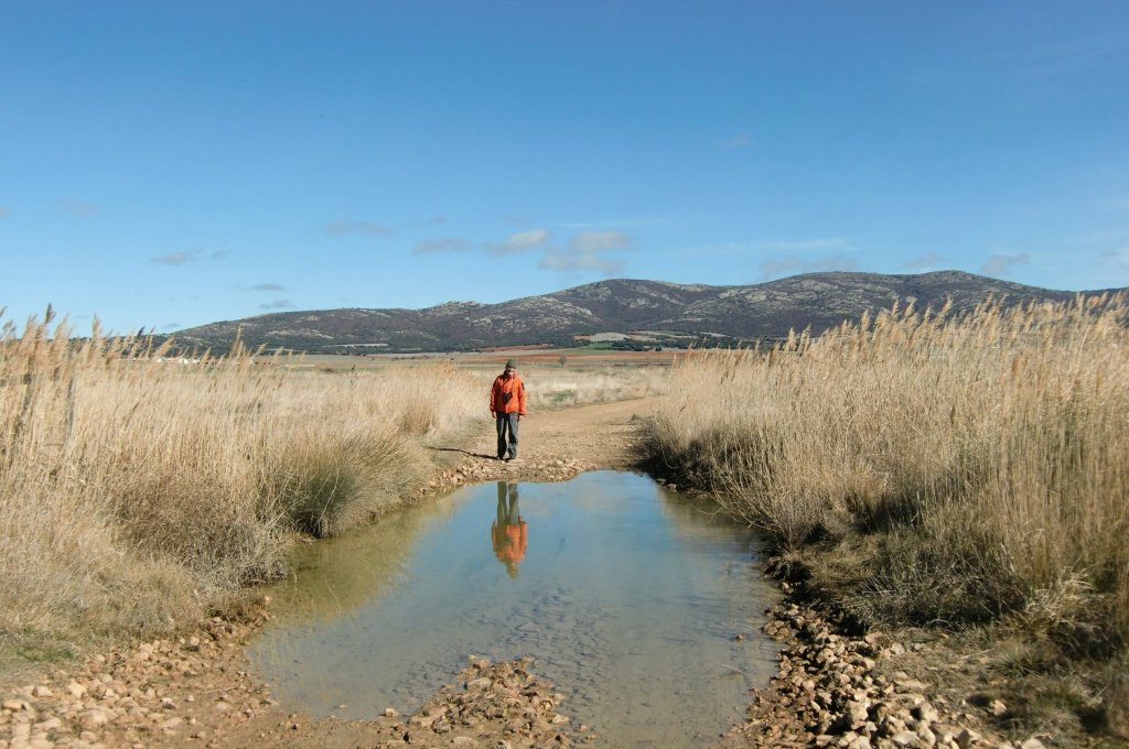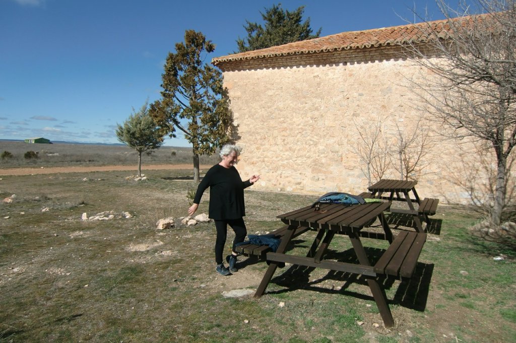 Wie erwartet ist an der Klause kein Mensch, die Sonne scheint und flugs pelle ich mich aus meiner zweiten Kleidungsschicht. Eine Runde Turnen mit Frau Fastner, das ist es, worauf ich nach der ganzen Fahrerei der letzten Tage jetzt Lust habe. Gabi Fastner und ich turnen, YouTube sei Dank, seit rund einem Jahr fast täglich zusammen. Normalerweise in unserem Wohnzimmer, heute mit fantastischem Blick auf die Laguna de Gallocanta.