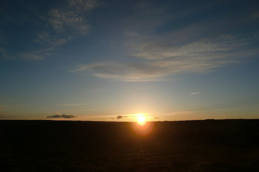 Die Sonne scheint, aber es hat nur 5 Grad. Mir ist es zu kalt, um die ganze Zeit draußen zu stehen. Achim ist hart im Nehmen, bleibt draußen und kann sich immer nicht entscheiden, ob große Kamera, kleine Kamera, Spektiv oder Fernglas das Instrument der Wahl ist. Ich throne im Bus, genieße von hier aus die tolle Aussicht und kann im Warmen der Sonne beim Untergehen zuschauen.