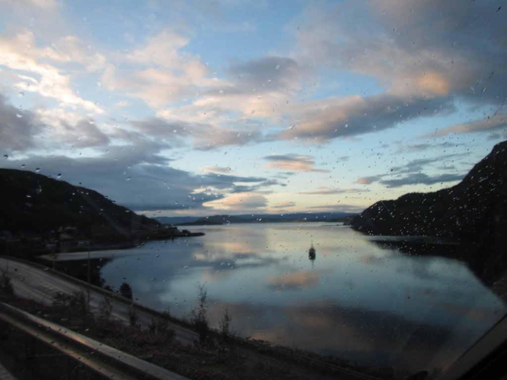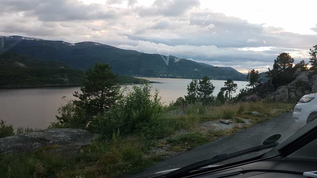 Wir fackeln nicht lang, wenden und fahren zurück auf einen Parkplatz an der E 6. Keine Idylle, aber immerhin mit Blick auf den Fjord und vor allem: ohne Mücken. Es ist zwei, als wir endlich ins Bett fallen. Ganz ohne bssssssss.