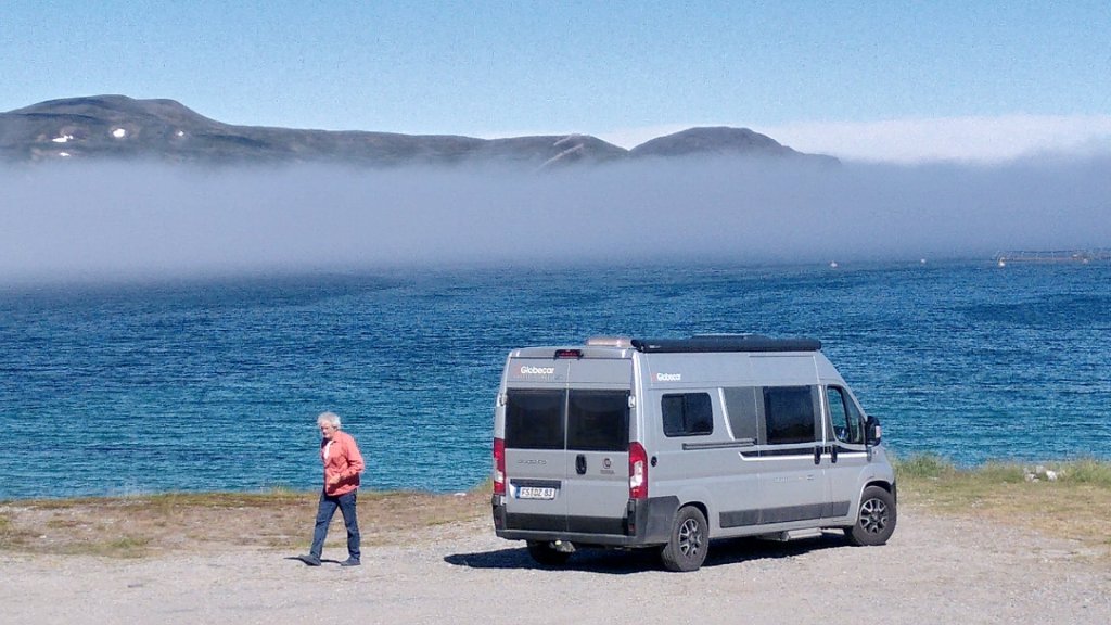 Was bin ich froh, dass ich es mir anders überlegt habe! Nun sind wir hier am nördlichsten vom Festland aus auf dem Straßenweg erreichbaren Punkt Europas. Der Wind rüttelt am Bus. Dicke Wolken ziehen über uns hinweg. Als wir heute Morgen aufwachen, hatte es 24 Grad. Jetzt sind es noch 12. Aber ich finde, dass so ein Wetter besser hierher passt als die Hitze und der gleißende Sonnenschein der letzten Tage (auch wenn sie mich wirklich begeistert haben).