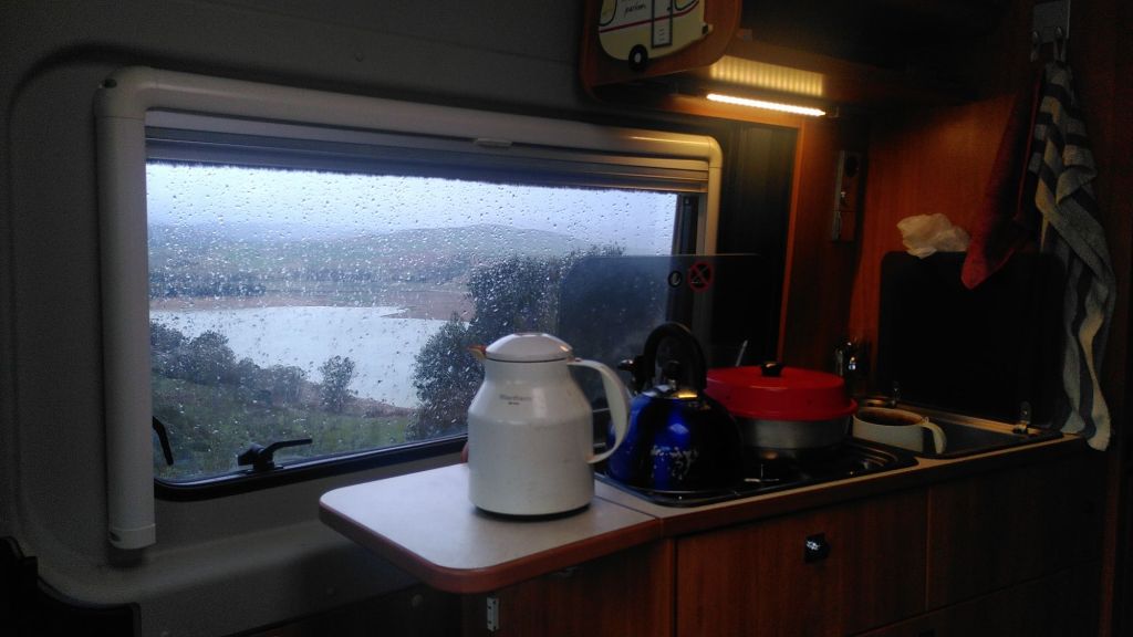„Dauerregen mit zehn bis 20 Liter pro Quadratmeter“, sagt wetteronline für das andalusische Hinterland voraus. Das ist einerseits großartig, denn genau in dieser Gegend herrscht gerade eine große Wasserknappheit. Teilweise gibt es in den Dörfern um uns herum kein Trinkwasser mehr aus den Leitungen und die Menschen erhalten ihr Wasser mit Hilfe von Lastwagen, die zweimal in der Woche Kanister vorbeibringen. Gut also, dass es regnet. Für uns persönlich ist das natürlich nicht so schön. Fahrradfahren, Wandern, durch schöne Orte Bummeln macht bei Regen nicht so viel Spaß.