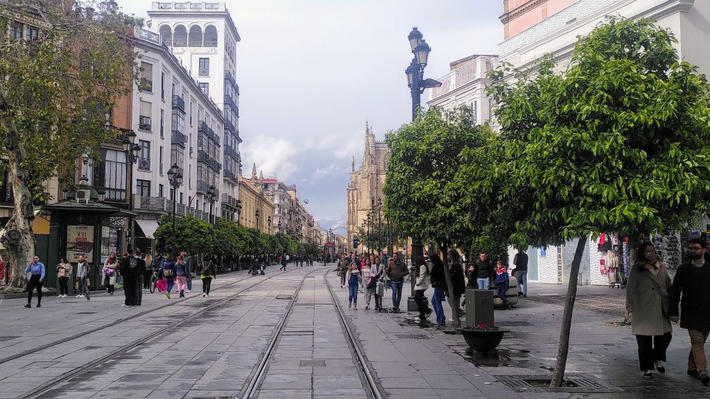 Hat eigentlich schon mal jemand Kopenhagen mit Sevilla verglichen? Die dänische Hauptstadt wird ja oft als DIE Stadt für FahrradfahrerInnen gelobt. Auch von uns, denn wir sind in Kopenhagen geradelt und fanden die Infrastruktur großartig. Aber nun wissen wir: die in Sevilla ist genauso toll. Wir radeln von einer Sehenswürdigkeit zur anderen auf den grünen Fahrradstreifen, kilometerweit. Hervorragend. So machen Stadtbesichtigungen Spaß.