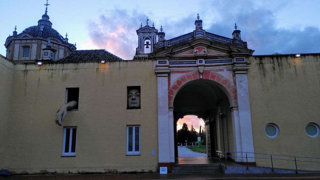 Wir radeln weiter, ich bremse an einem interessant aussehenden Tor. Als wir durchfahren, tut sich ein großer Gebäudekomplex auf: das Centro Andaluz de Arte Contemporáneo, also das andalusische Zentrum für zeitgenössische andalusische Kunst.