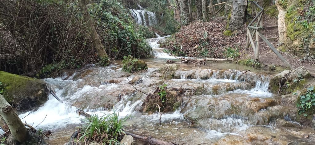 Dann geht es ein Stück runter, ein Stück rüber und wir sind am Wasserfall Malena. Hiertritt der Fluss Cerezuelo aus den Bergenund mäandert über zahllose Kaskaden bis hinunter nach Cazorla. Der Wanderweg begleitet ihn nun, was mich an der einen oder anderen Stelle herausfordert, wenn mal keine schöne Brücke zum queren da ist sondern nur Steine oder Hölzer.
