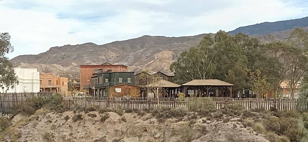 Eine halbe Stunde später können wir los. Richtung Tabernas. Durch die Halbwüste, die wir alle aus dem Kino kennen. Denn hunderte Spielfilme, davon zahlreiche Wildwestfilme wie beispielsweise Sergio Leones „Spiel mir das Lied vom Tod“ aus dem Jahr 1968 oder „Der Schuh des Manitu“ von Bully Herbig entstanden hier und noch heute drehen viele Regisseure gern in dieser einzigartigen Kulisse. Die Filmsets stehen zum Teil noch hier und können gegen (saftige) Eintrittsgebühren besichtigt werden.